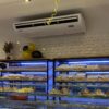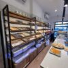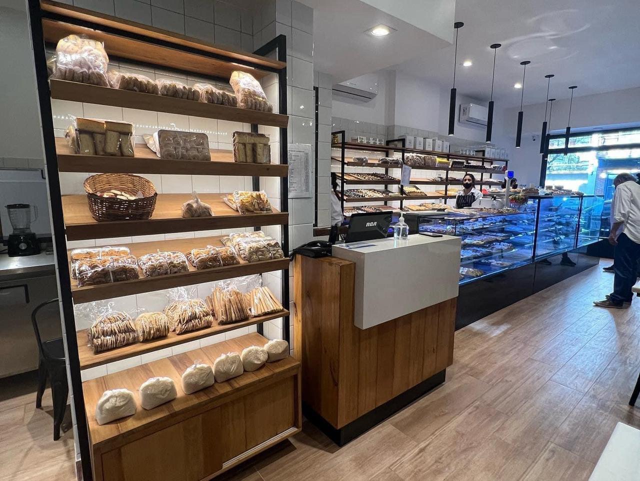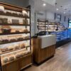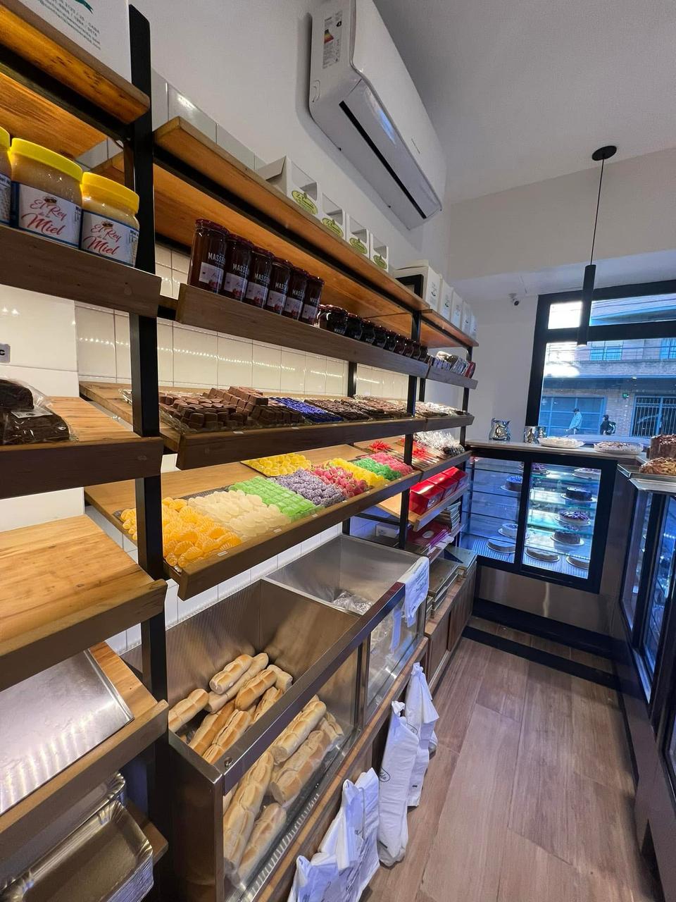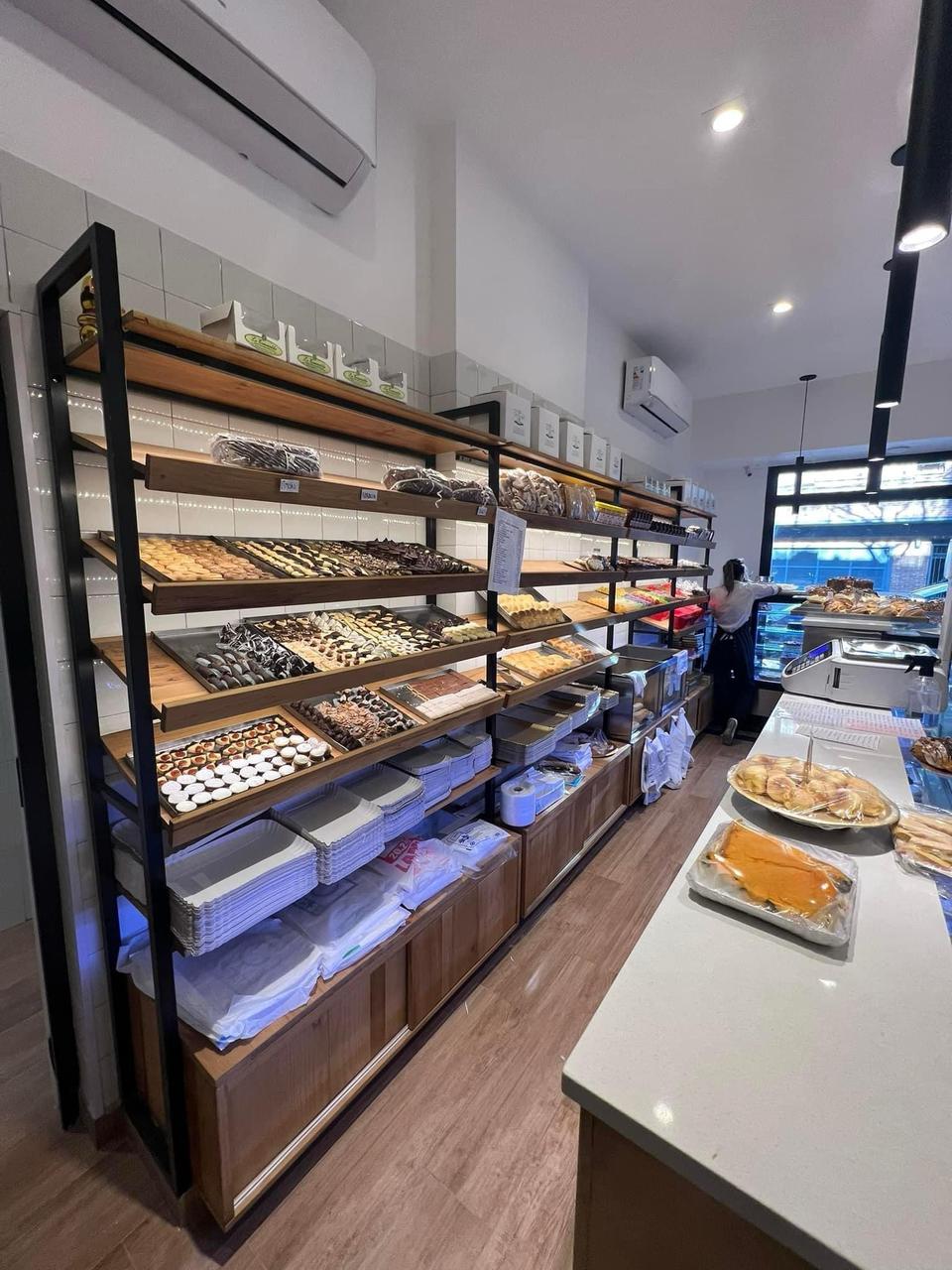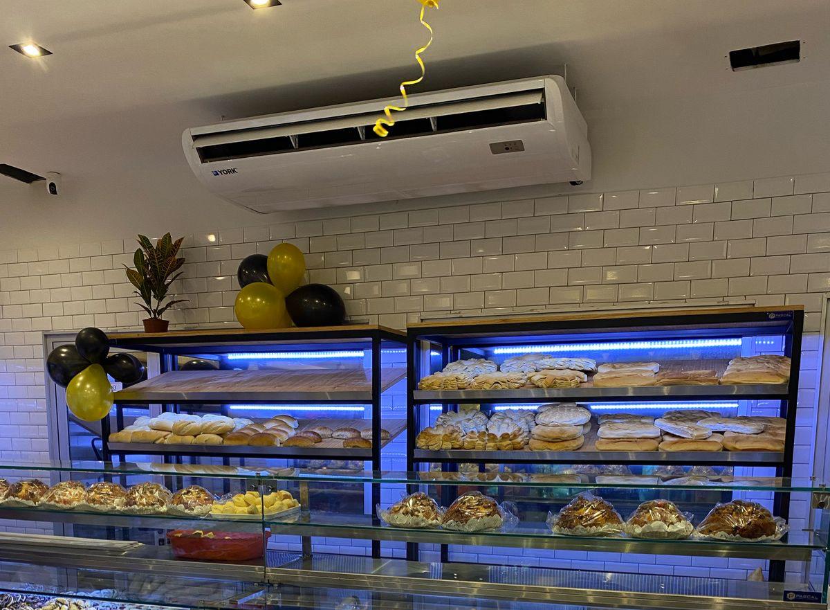 Mueble vertical fabricado en estructura de caño 30×30 negro. Cenefa superior iluminada o con moldura ciega. Estantes de madera con frente en acero con inclinación con tope y apoyo para bandejas. Luz led debajo de cada nivel de exhibición. Sector inferior de guardado con puertas o abierto con estantes.